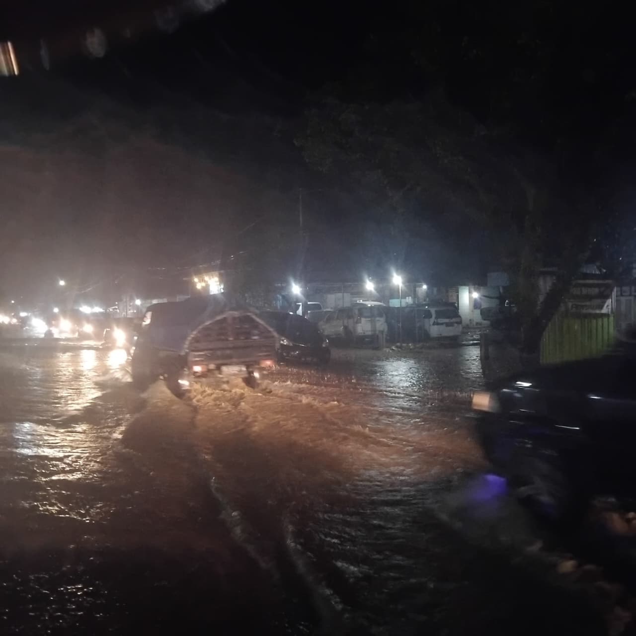 Banjir Setinggi Lutut Genangi Jalan Depan Pasar Pagi Bumi Wonorejo Nabire