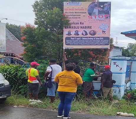 Berkaitan dengan hal tersebut, Bawaslu kabupaten Nabire, sejak rabu (17/06), mulai melakukan pemasangan alat peraga sosialisasi.
