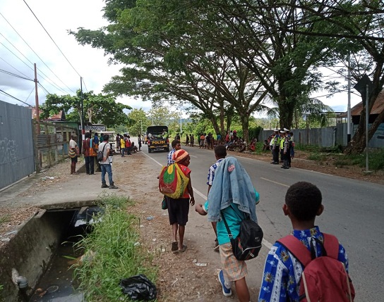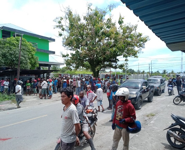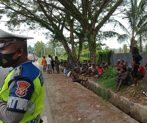 Nabire, Sejumlah warga rabu siang (05/05/21) sekitar pukul 12.00 WIT, terlibat saling bentrok di Jalan Poros Wadio, Distrik Nabire Barat, kabupaten Nabire.