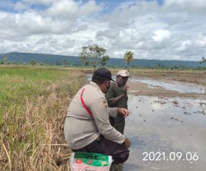 Nabire, Pada hari Senin tanggal 6 September 2021, bertempat di Kampung Bumi Raya SP 1 Distrik Nabire Barat Kabupaten Nabire, Satgas Binmas Noken yang dikoordinir oleh Kasat Binmas Polres Nabire AKP Afrets M. Tatiratu memberikan pendampingan kepada Bapak Yopi Adii selaku warga yang berprofesi sebagai petani.