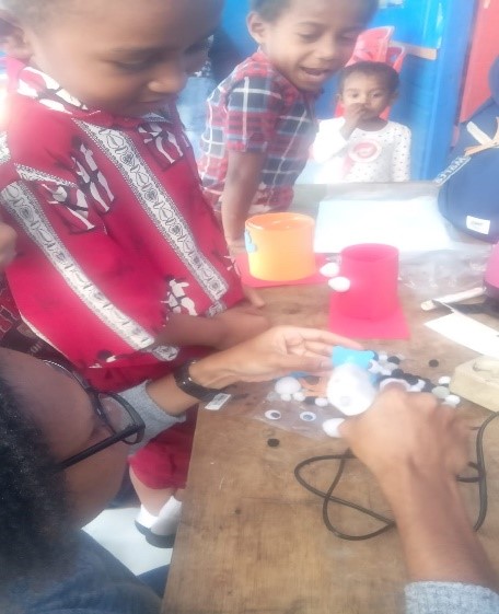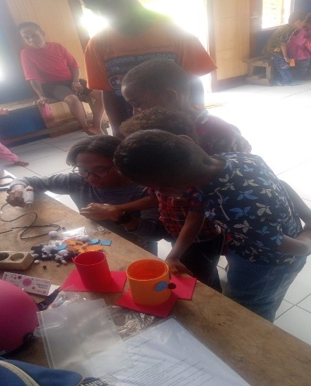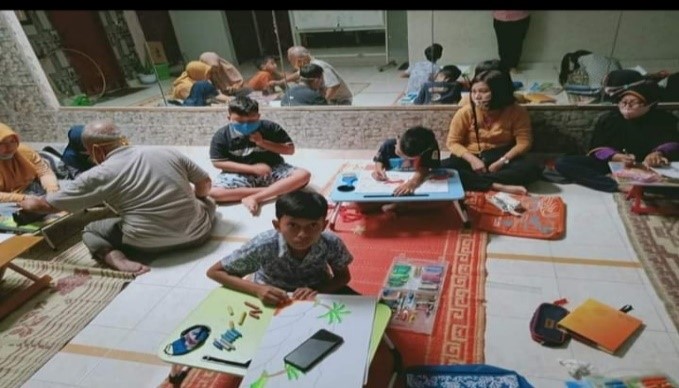 Saat belajar melukis Melalui melukis melatih anak-anak untuk mengekpresikan diri mereka dan mengembangkan kreativitas, imajinasi peserta didik, melatih motorik kasar dan motorik halusnya serta dan mengenalkan seni secara dini