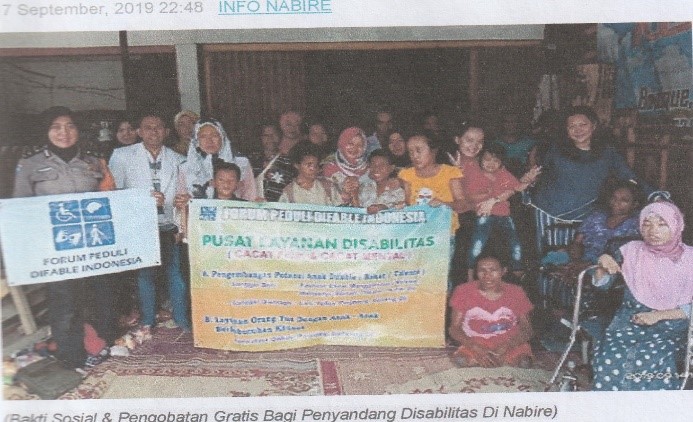Nabire adalah salah kabupaten di provinsi Papua Tengah. Sebuah pulau yang awalnya sangat asing dan tidak kenal siapapun dan sarat akan resiko serta hambatan dan tantangan baik karakter masyarakat maupun kondisi daerah yang tergolong rawan keamanan dan masyarakat belum kenal kegiatan disabilitas, melihat kondisi yang penuh resiko dan saya dipertemukan sosok orang orang yang mempunyai kepedulian sosial yaitu satu polisi laki laki dan satu polisi wanita yang memang tugasnya pelayan masyarakat dan aktif mendampingi kegiatan saya, di samping melaksanakan tugas-tugas polisi dan selalu memberikan sosialisasi dan pendekatan kepada masyarakat umum dan khususnya keluarga disabilitas.