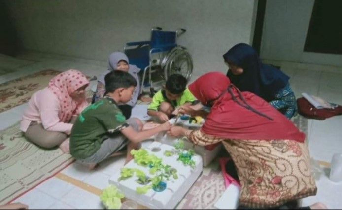 Praktek Hidroponik bersama anak-anak Menumbuhkan produktifitas anak untuk menanam sayur mayur organik dengan memanfaatkan lahan dan pekarangan rumah sekitar yang kurang produktif.