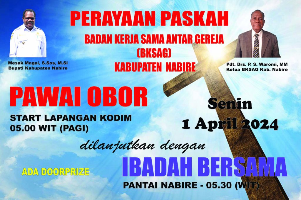 BKSAG Kabupaten Nabire mengajak warga Nabire untuk mengikuti perayaan Paskah Bersama ini.