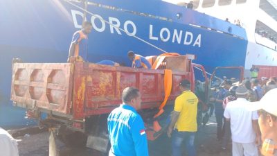 Kapal PELNI KM Dorolonda Bantu Evakuasi Truk Jatuh ke…