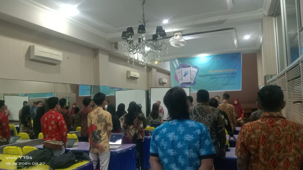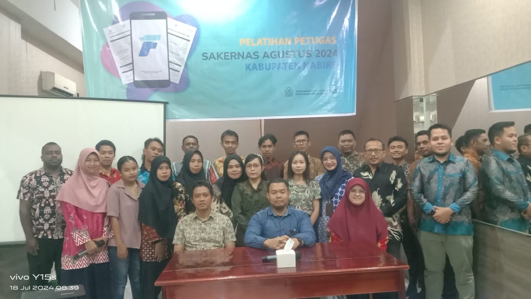 Nabire, 18 Juli 2024 – Bertempat di Hotel Karya Papua, Jalan RE Martadinata Nabire, Badan Pusat Statistik (BPS) Kabupaten Nabire menggelar Pelatihan Pendataan Survei Angkatan Kerja Nasional (Sakernas) bulan Agustus 2024. Acara ini berlangsung pada Kamis (18/07) dan dihadiri oleh peserta serta pejabat terkait.