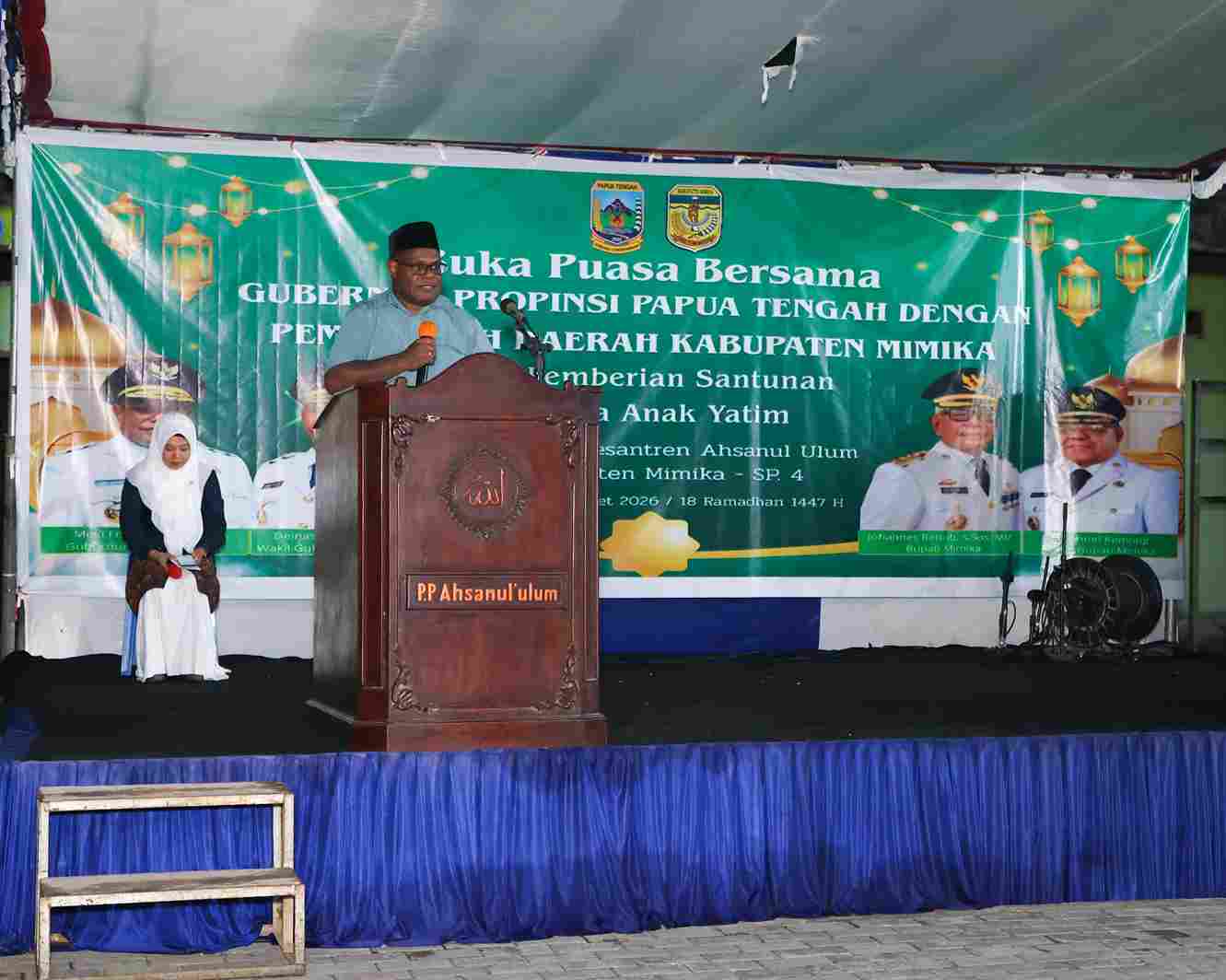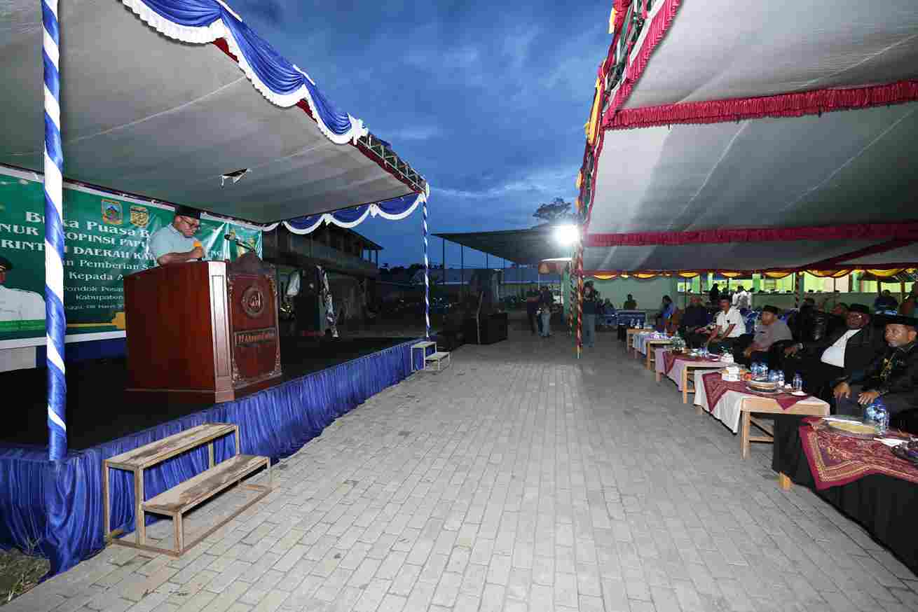 Nabire, 8 Maret 2026 – Pemerintah Provinsi Papua Tengah menggelar kegiatan buka puasa bersama sekaligus pemberian santunan kepada anak yatim dan para khatib di Pondok Pesantren Ahsanul Ulum, Timika, Minggu (08/03/2026).