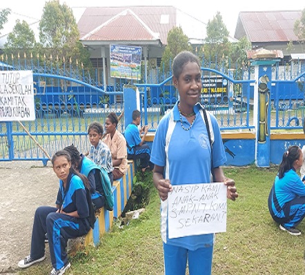 Dalam aksi ini, orang tua wali murid meminta agar Plt.Kepala Sekolah yang baru, Soleman Dimara, segera diangkat menjadi Kepala Sekolah definitif menggantikan pejabat lama yang sudah pensiun, Ibu Saloce Yumame.
