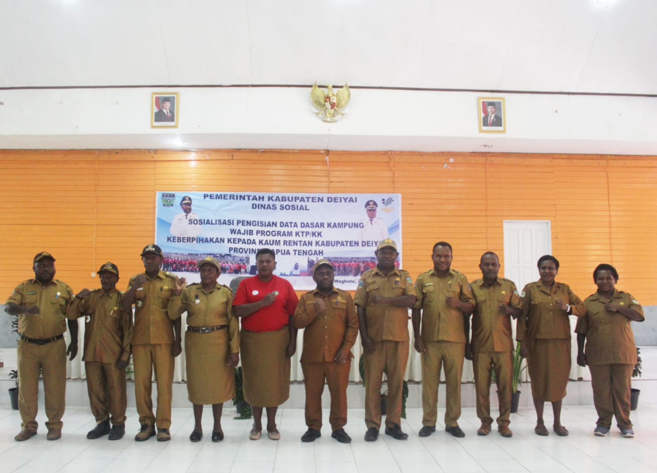 Kegiatan ini dihadiri oleh Kepala Dinas Sosial Kabupaten Deiyai Yulita Mote, pimpinan OPD teknis, para kepala kampung, pendamping kampung, staf Dinas Sosial, serta tamu undangan lainnya.