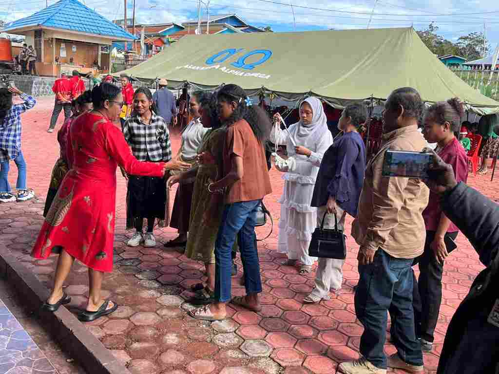Bupati Deiyai dan istri tampak menyambut langsung para tamu undangan dengan penuh kehangatan. Suasana kekeluargaan begitu terasa saat Bupati bersalaman, berbincang santai, dan berfoto bersama masyarakat yang hadir. Berbagai hidangan khas Natal turut disajikan untuk menjamu para tamu.