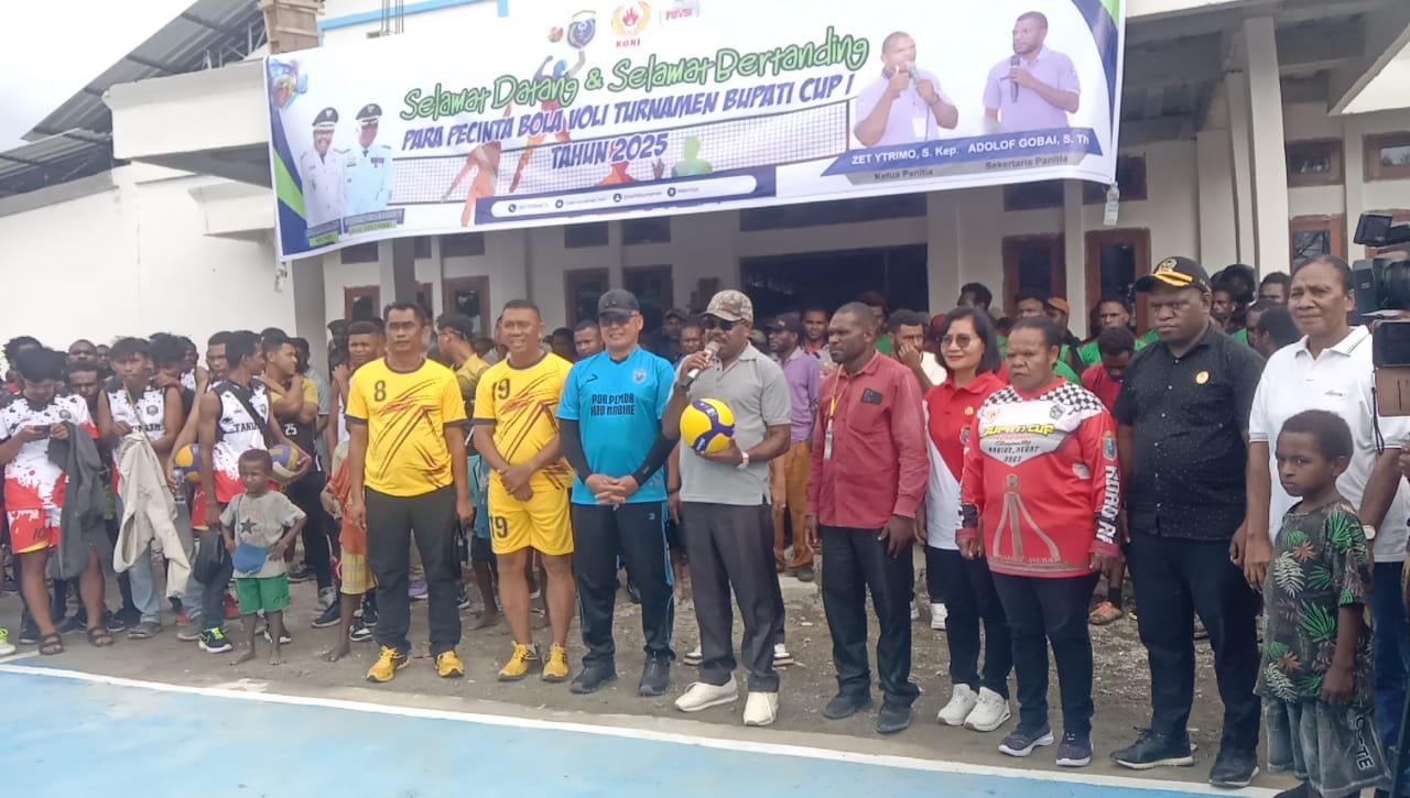 Nabire, 13 Juni 2025 – Pemerintah Provinsi Papua Tengah melalui Bupati Kabupaten Nabire secara resmi membuka Turnamen Bola Voli Bupati Cup I antar klub se-Kabupaten Nabire yang berlangsung di Lapangan STT Walter Post, Nabire.