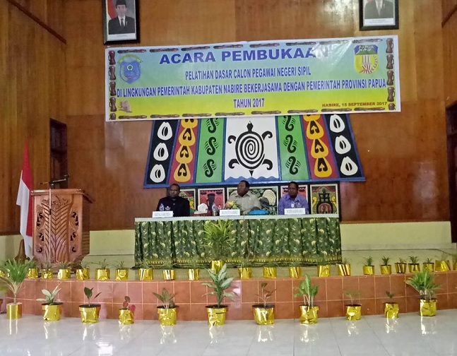 Bupati Nabire, Isaias Douw S.Sos M.Ap, didampingi Ketua Panitia Diklat Prajabatan, Anton Pekei S.Sos M.Si, kamis pagi 14 September 2017, secara resmi membuka Diklat Prajabatan Calon Pegawai Negeri Sipil Golongan II dan Golongan III untuk Pemerintah Kabupaten Nabire dan 5 kabupaten lainnya di Papua, Tahun 2017, bertempat di Guest House jalan Merdeka Nabire.