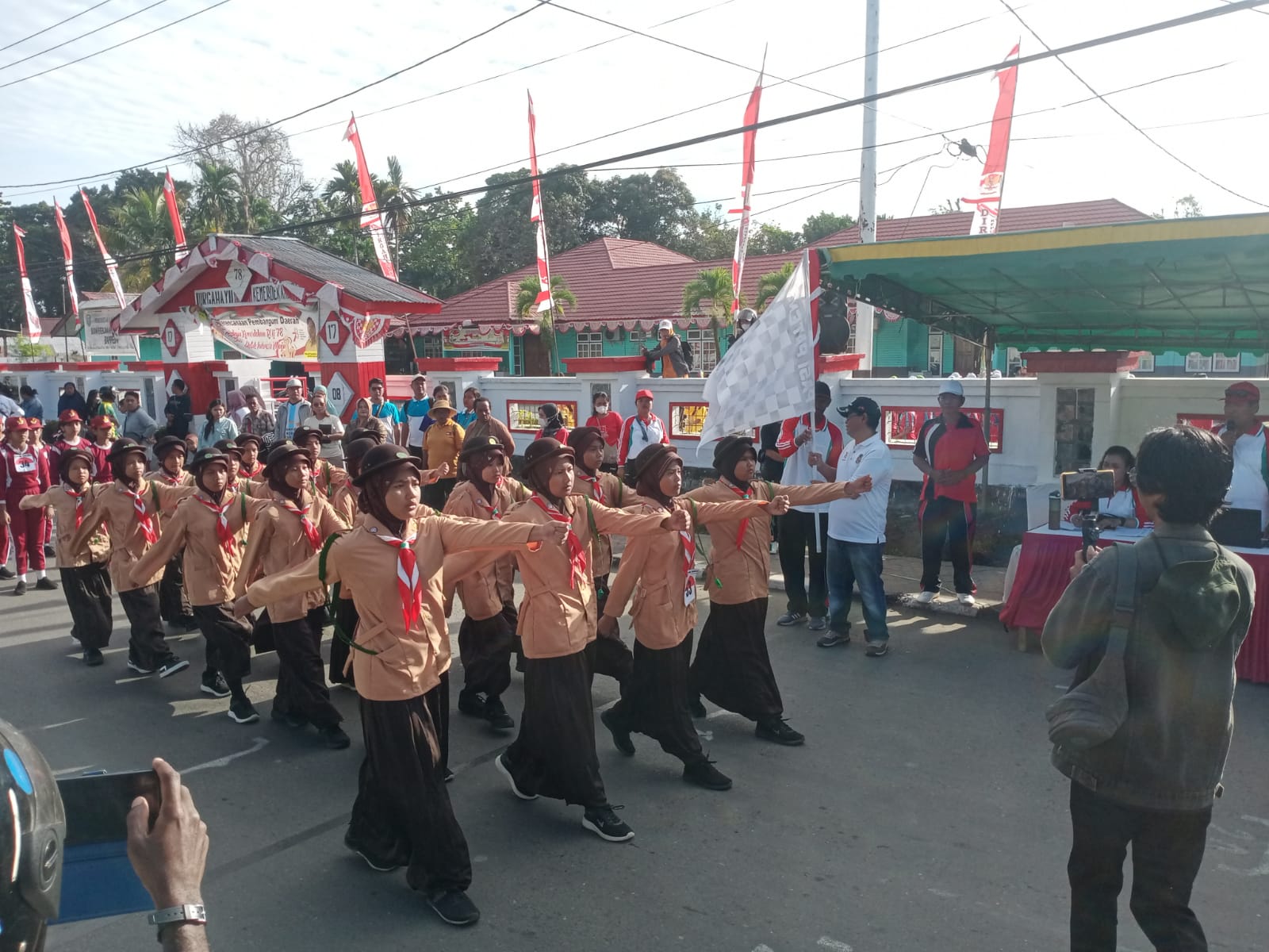 Sehari sebelumnya, Bupati Nabire melepas peserta Gerak Jalan Indah tingkat SMA/SMK dalam rangka HU Kemerdekaan RI ke-78.