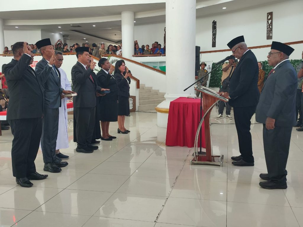 Adapun pejabat yang dilantik antara lain Santy Sondang sebagai Asisten II Bidang Ekonomi dan Pembangunan, Herry Onawame sebagai Asisten III Bidang Administrasi Umum, serta Johana Arwam sebagai Kepala Dinas Pemberdayaan Perempuan, Perlindungan Anak dan Keluarga Berencana.