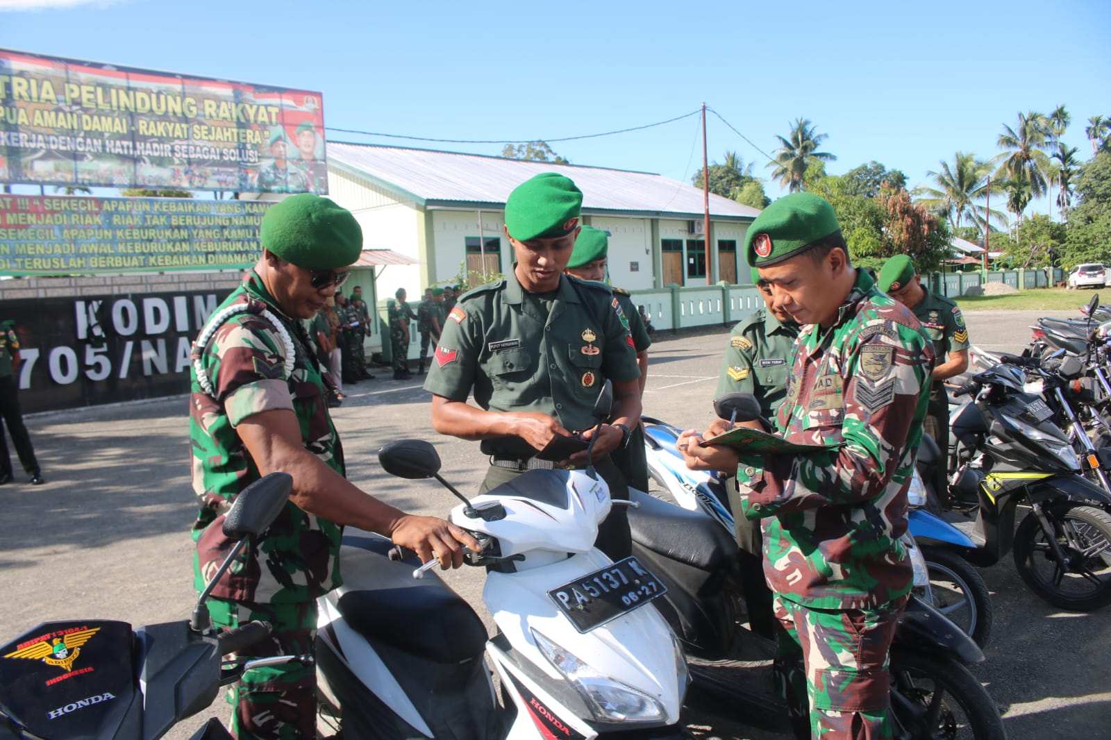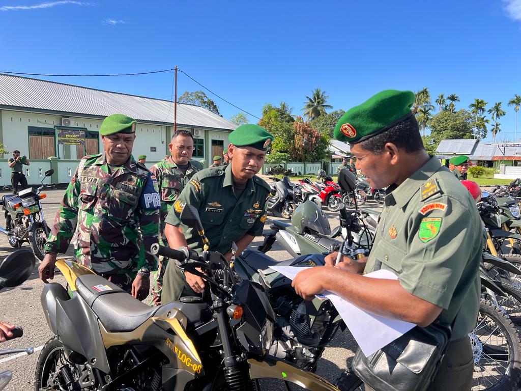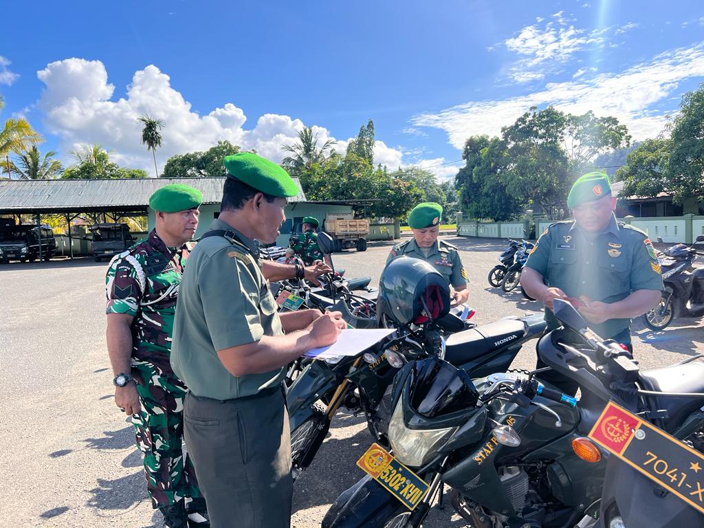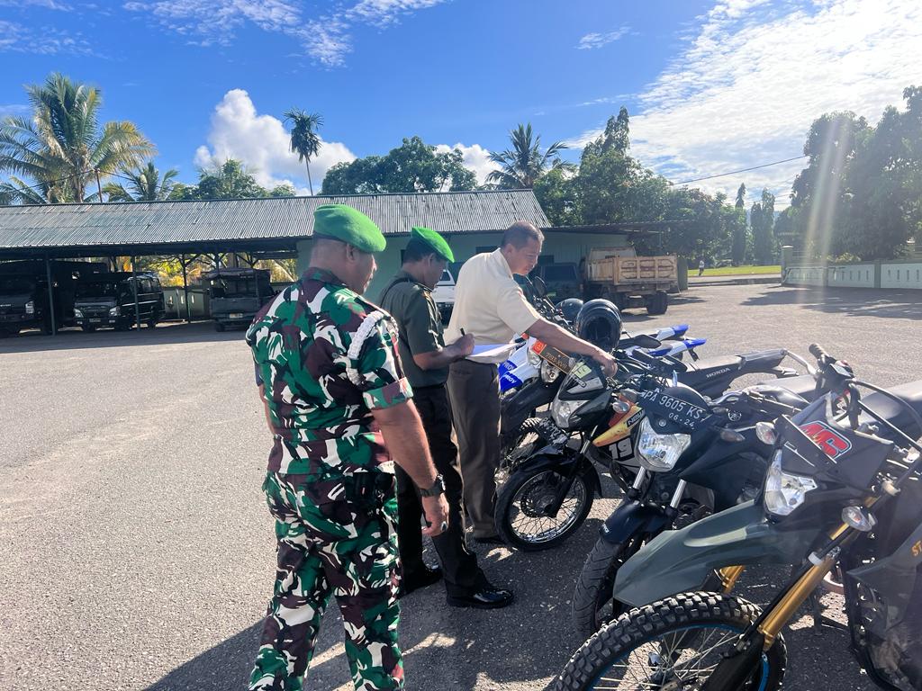 Nabire, Menindaklanjuti perintah Dandim 1705/Nabire, Kodim 1705/Nabire menggelar pemerikasaan kendaraan dinas dan kendaraan pribadi anggota, baik TNI AD maupun PNS Kodim 1705/Nabire, bertempat di Lapangan Hitam Kodim 1705/Nabire, Nabire, Papua Tengah, Senin (06/11/2023).