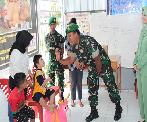 Dalam anjangsana ini, Kapten CZI Selo Prawoto bersama Ibu-Ibu Persit KCK, menyapa anak-anak Difabel sekaligus memberikan bantuan.