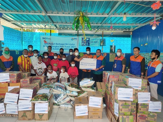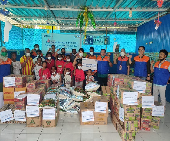 Nabire, Bank BRI Kantor Cabang Nabire, melaksanakan kegiatan Bakti Sosial ke Yayasan Forum Peduli Difabel Nabire Papua, Kalibobo Nabire, Jumat (31/12), dalam rangka memperingati hari Natal 2021.
