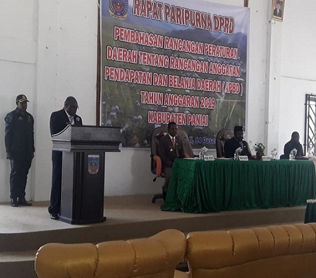 Paniai – Bertempat di aula Kantor Bupati Paniai yang berada di Madi, telah dilaksanakan Rapat Paripurna DPRD kabupaten Paniai, dengan pembahasan Rancangan Peraturan Daerah tentang Rancangan Anggaran Pendapatan dan Belanja Daerah, Tahun Anggaran 2019, untuk kabupaten Paniai.