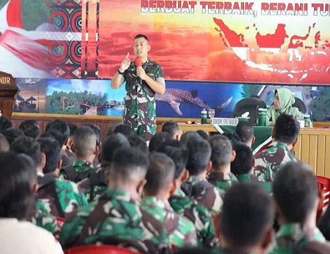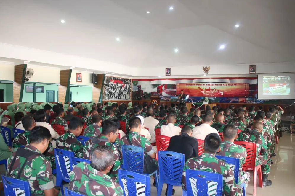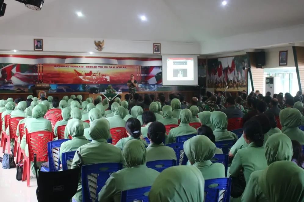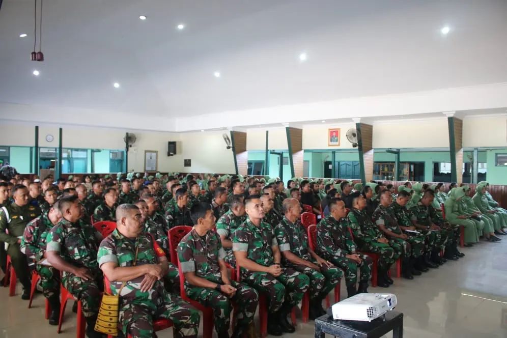 Nabire, Bertempat di Aula Kodim 1705/Nabire, Dandim 1705/Nabire, Letkol Inf Doni Firmansah, M.Han., didampingi Ketua Persit KCK Cab. XX Kodim 1705/Nabire, Ny. Tari Doni Firmansah, memberikan pengarahan kepada seluruh Anggota TNI AD dan PNS beserta anggota Persit segarnizun Nabire.