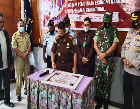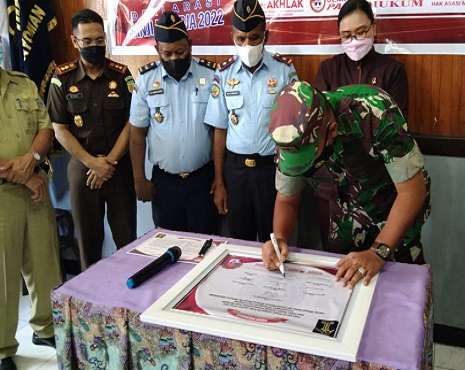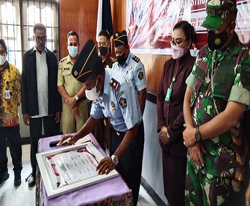 Usai deklarasi Janji Kinerja diikrarkan, Kepala UPT dan Pejabat Struktural melakukan penandatanganan Janji Kinerja disaksikan langsung oleh Perwakilan Kanwil KemenKumHam Papua, Kepala Bidang HAM, Fatrix C.Manifandu, S.H.,M.H beserta unsur Forkopimda yang hadir.