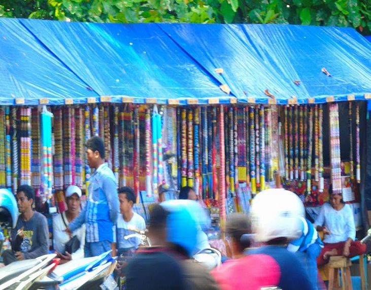Sementara penjual kembang api dan petasan hingga sore hari tadi masih terlihat sepi, namun satu persatu mulai didatangi pembeli seperti di Pantai Nabire.
