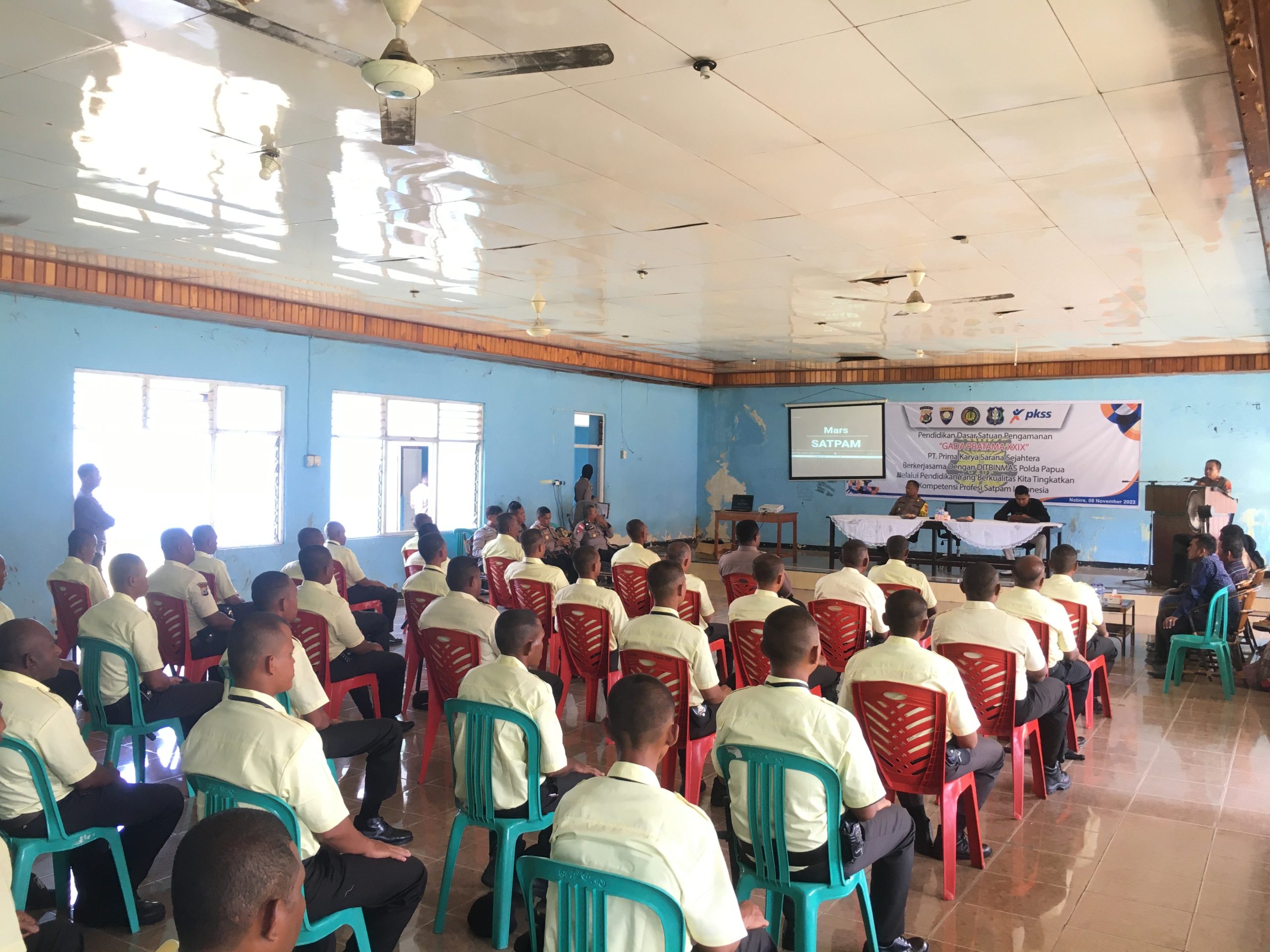 Nabire, Bertempat di Kantor Balai Diklat Jalan Pertiwi Nabire, Sabtu (18/11/2023), telah dilaksanakan Upacara Penutupan Diksar Satpam Gada Pratama XXIX PT. Prima Karya Sarana Sejahtera bekerja sama dengan Dit Binmas Polda Papua.