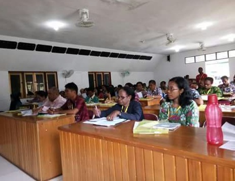 Selain itu hadir juga, Sekretaris Dinas Pendidikan, Victor Tebai S.Pd M.Ap, Konsultan PMP Dirjen Kementerian Pendidikan, Udeng SE M.Si, dan nara sumber Drs. Asmanto M.Pd.