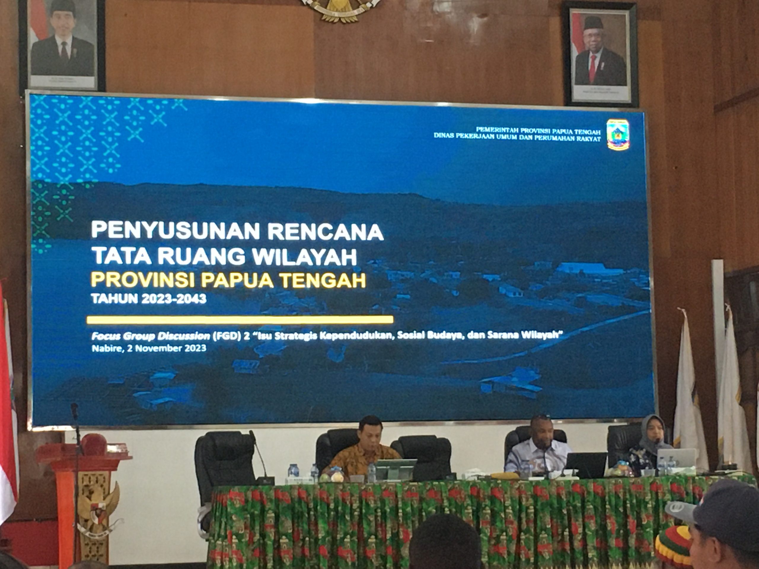 Nabire, Bertempat di Aula Kantor Gubernur Papua Tengah, telah dilaksanakan Focus Group Discussion Penyusunan Rencana Tata Ruang Wilayah Provinsi Papua Tengah, 2-3 November 2023.