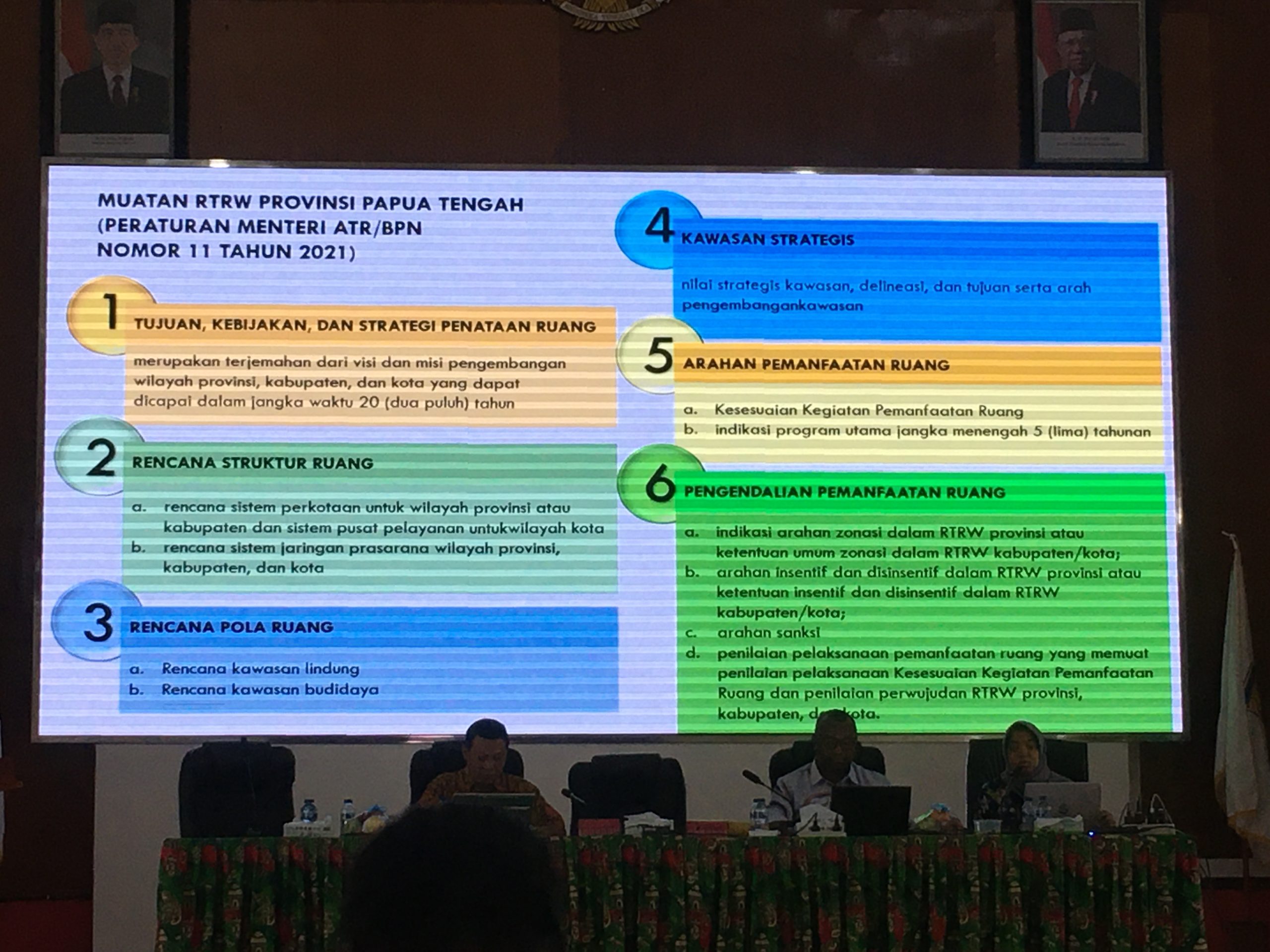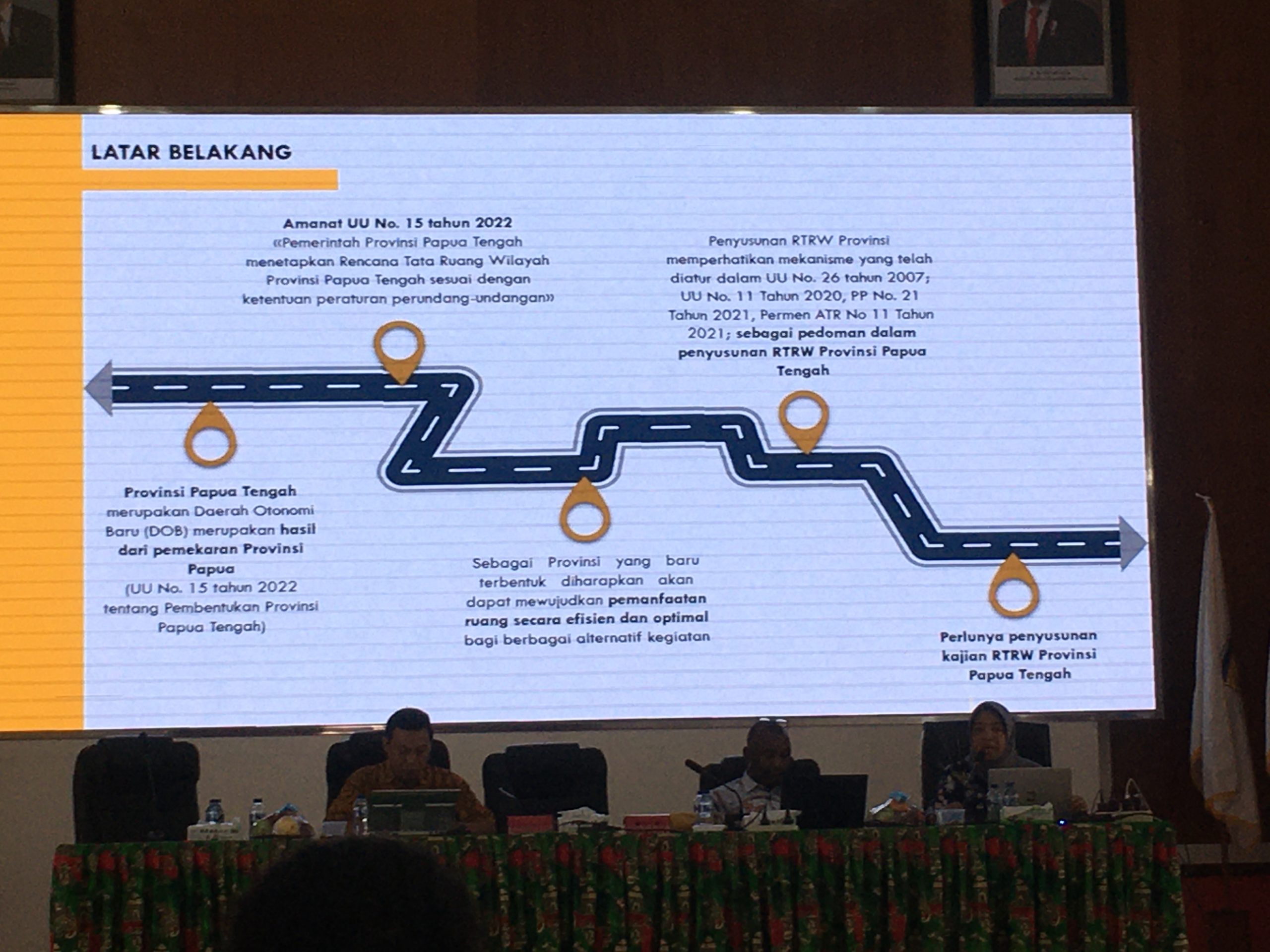 Pembahasan mengenai Rencana Tata Ruang Wilayah Papua Tengah ini adalah bagian dari salah satu instrumen daerah dalam pembangunan jangka panjang yakni untuk 20 tahun ke depan.