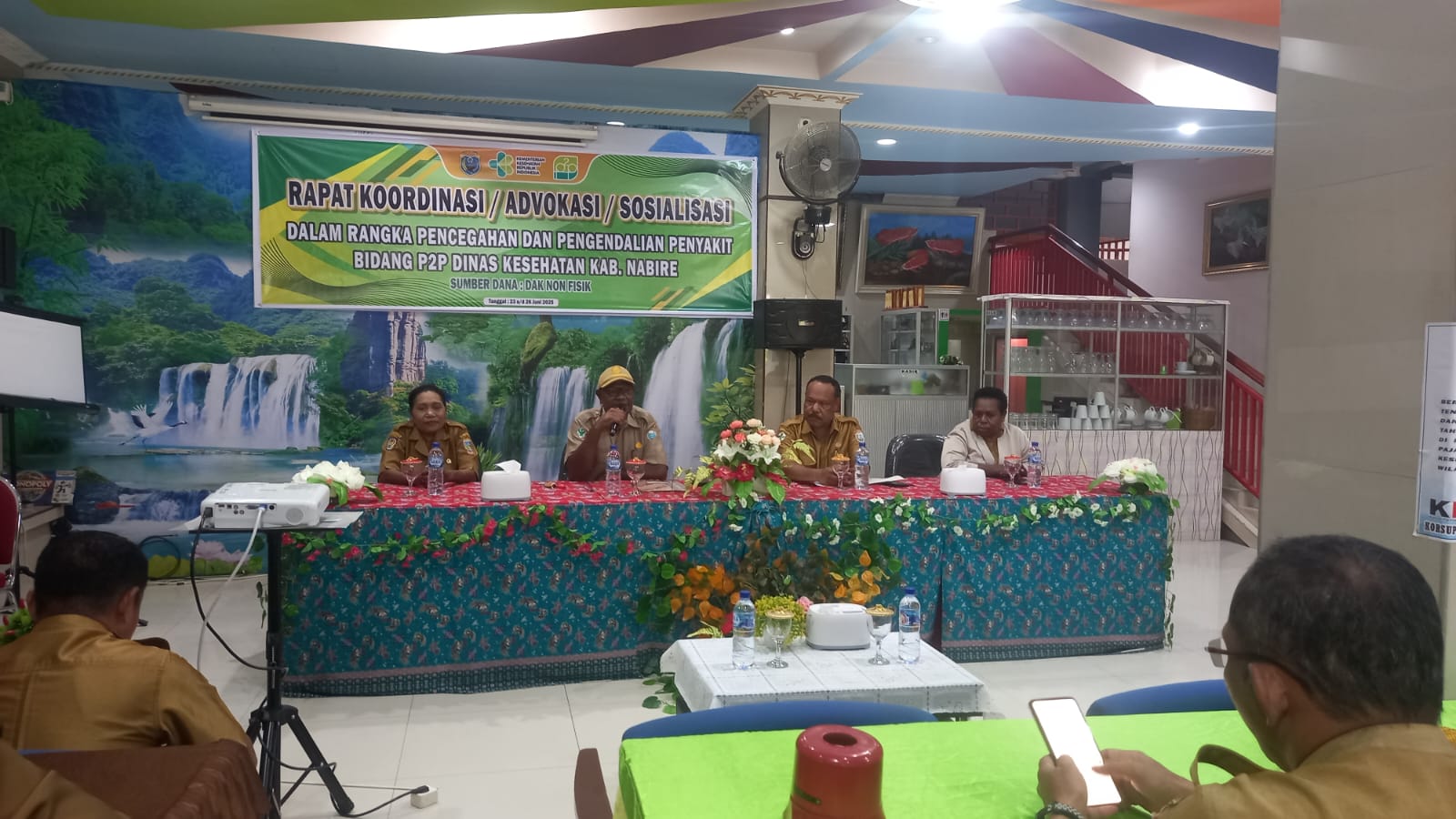 Nabire, 23 Juni 2025 – Dalam upaya meningkatkan efektivitas program pencegahan dan pengendalian penyakit, Dinas Kesehatan Kabupaten Nabire menggelar Rapat Koordinasi, Advokasi, dan Sosialisasi Bidang P2P (Pencegahan dan Pengendalian Penyakit). Kegiatan ini berlangsung di Aula Hotel JDF, Jalan Semarang Nabire, sejak Senin (23/06) hingga Kamis (26/06).