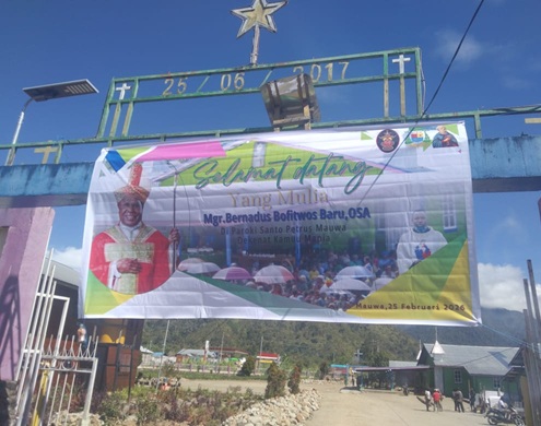 Dogiyai, 26 Februari 2026 – Umat Paroki Santo Petrus Mauwa, Dekenat Kamuu Mapia dan Piyaiye (KAMAPI), Keuskupan Timika menyambut kedatangan Uskup Mgr. Bernadus Bofitwos Baru, OSA, dengan penuh sukacita di halaman Gereja Katolik Santo Petrus Mauwa, Selasa (25/2/2026).
