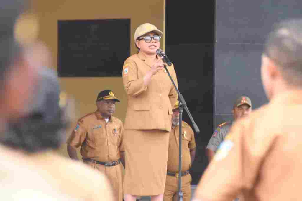 Puncak Jaya, 9 Februari 2026 – Penjabat Sekretaris Daerah (Pj Sekda) Kabupaten Puncak Jaya, Yubelina Enumbi, SE, MM, MH memimpin apel pagi Aparatur Sipil Negara (ASN) di halaman Kantor Bupati Puncak Jaya, Senin (09/02/26).