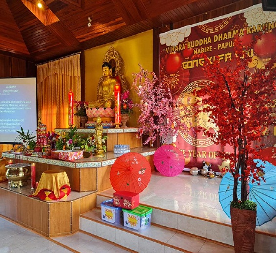 Khusus di Nabire, perayaan Imlek 2572 berlangsung secara sederhana dan kekeluargaan. Warga keturunan Tionghoa memilih beribadah di Vihara Buddha Dharma Karuna Nabire, jumat pagi (12/02/21).