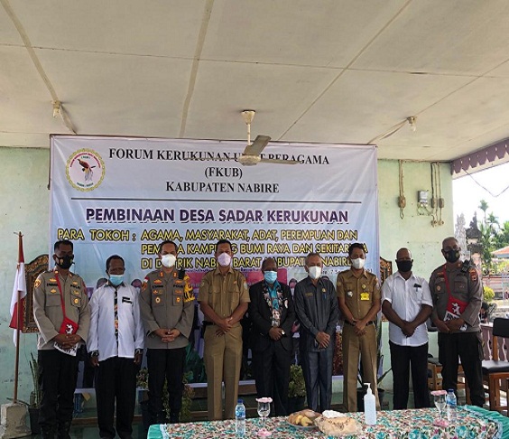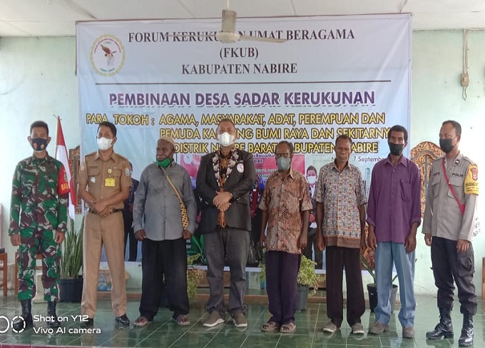 Doa bersama ini dilaksanakan dalam kegiatan pembinaan kampung/desa sadar kerukunan yang digagas oleh Forum Kerukunan Umat Beragama (FKUB) kabupaten Nabire, bertempat di halaman Pura Puja Dewata, SP1, Distrik Nabire Barat, Selasa (07/09/21).