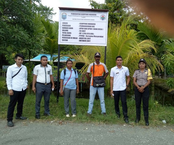 Seperti yang digelar rabu 25 Oktober 2017, di kampung Waharia, Distrik Teluk Kimi Nabire. Hadir dalam kegiatan Monev tersebut, 3 orang staf Dinas Pemberdayaan Masyarakat Kampung masing-masing Richard Ansanay, Alfredo Tiweri dan Irfan Febriansyah, mereka didampingi Bhabinkamtimbas Polsek Nabire Kota, Briptu Stephanie.