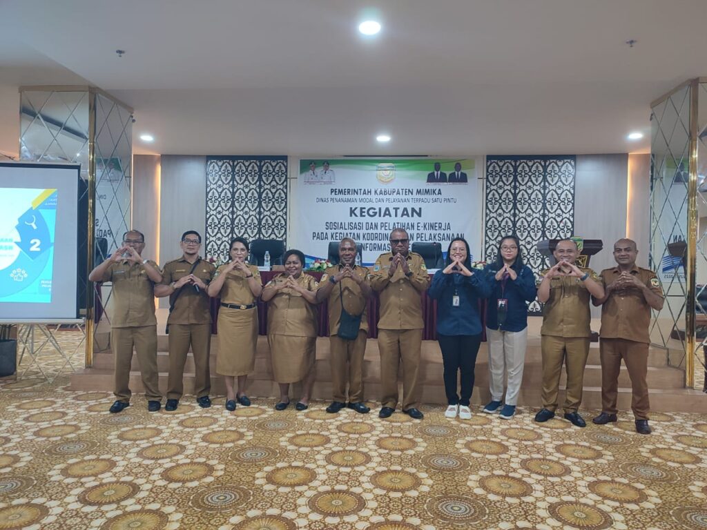Mimika, 26 Agustus 2025 – Dinas Penanaman Modal dan Pelayanan Terpadu Satu Pintu (DPMPTSP) Kabupaten Mimika menggelar Sosialisasi dan Pelatihan E-Kinerja yang terintegrasi dengan sistem informasi kepegawaian. Kegiatan berlangsung selama dua hari, 26-27 Agustus 2025, di ruang pertemuan kantor BPKAD Mimika.