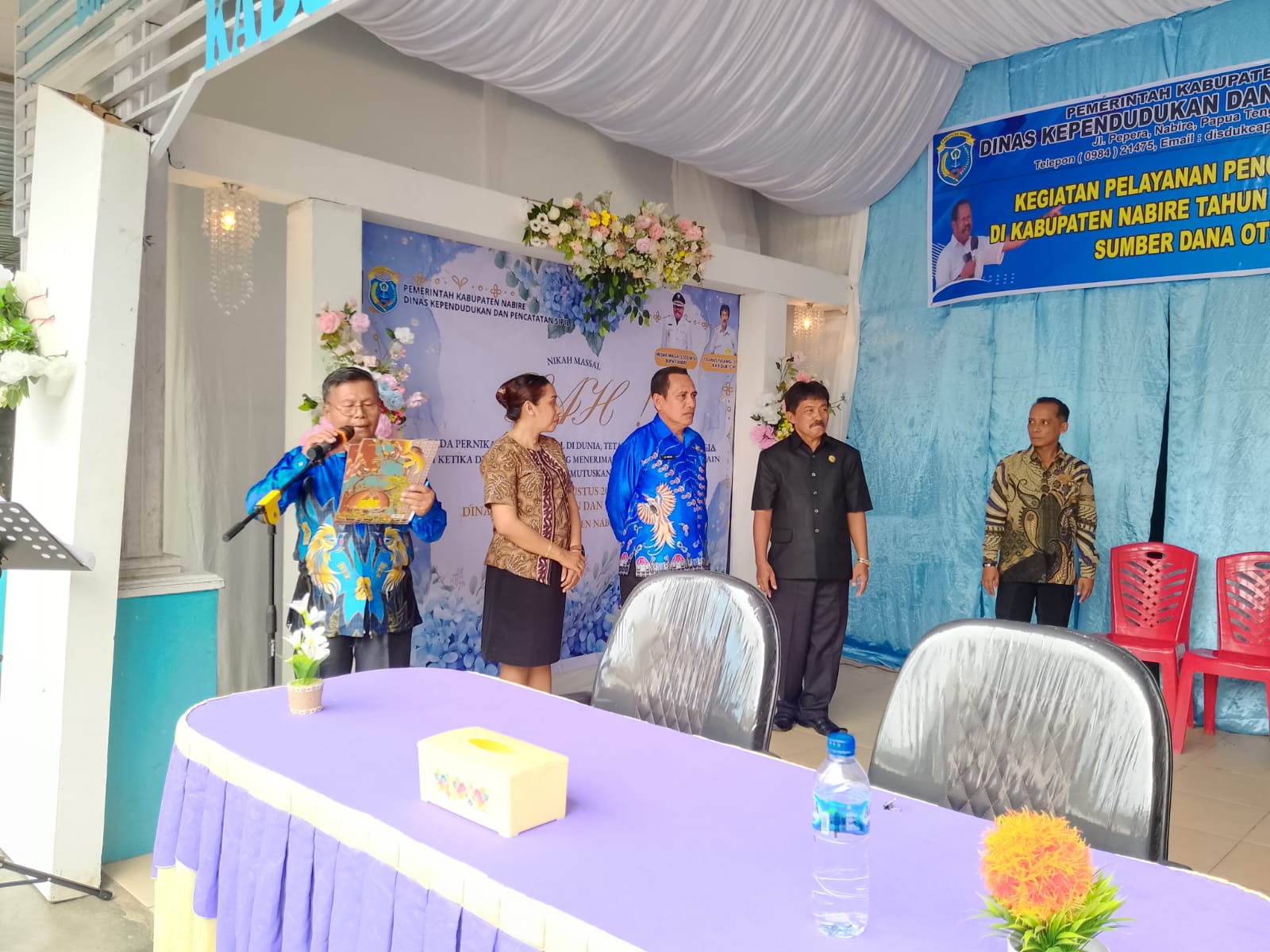Acara ini dihadiri oleh Bupati Nabire diwakili Asisten I Setda Nabire, La Halim, S.Sos dan Kepala Dinas Dukcapil Nabire, Yulianus Pasang, S.Pd., M.Pd.