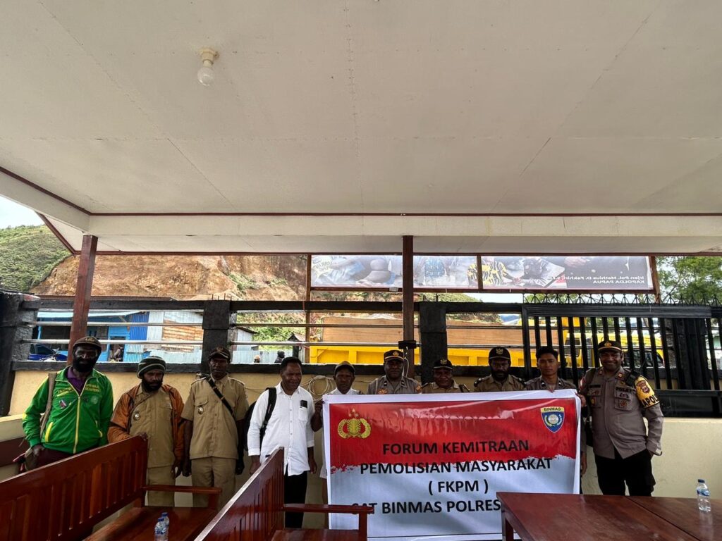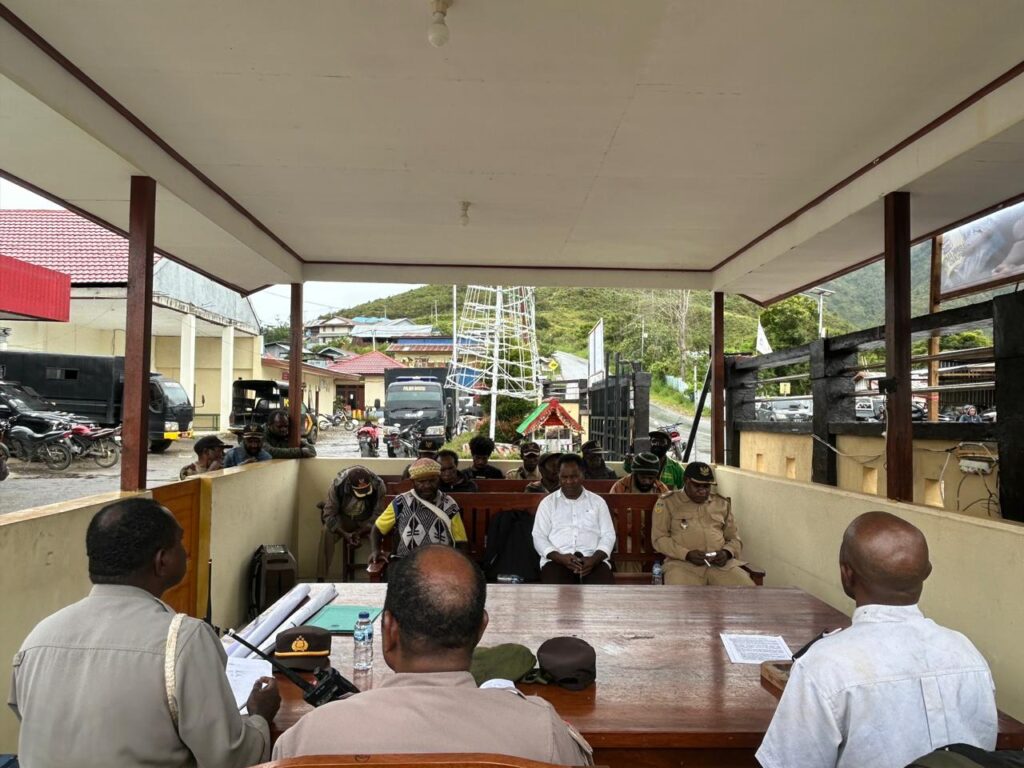 “Dalam pertemuan ini mari kita membahas tentang cipta kondisi Kamtibmas yang ada di Kabupaten Dogiyai serta permasalahan yang sering muncul seperti masalah miras, pemalangan, membawa alat tajam, dan lain sebagainya,” ucap Kapolsek.