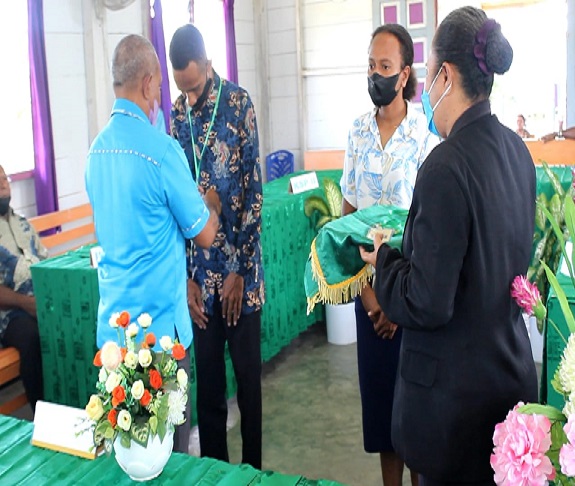 Selanjutnya selesai Ibadah Pembukaan dibuka secara resmi dan memberikan Kartu Tanda Peserta sidang Jemaat Alfa Omega ke XIII. dipimpin langsung oleh Badan Klasis Nabire,Y. Akwar,S.Th.