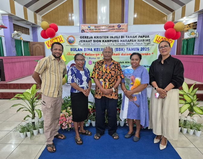 Nabire, 26 September 2025 – Dalam rangka Bulan Bina Keluarga Gereja Kristen Injili (GKI) di Tanah Papua, Jemaat GKI Sion Kampung Harapan Klasis Nabire melaksanakan kegiatan Temu Pasangan Suami Istri (Pasutri) yang dirangkaikan dengan Ibadah Gabungan Persekutuan Kaum Bapak (PKB) dan Persekutuan Wanita (PW). Kegiatan ini berlangsung di Gedung Gereja Jemaat GKI Sion Kampung Harapan, Kamis (25/9/2025).