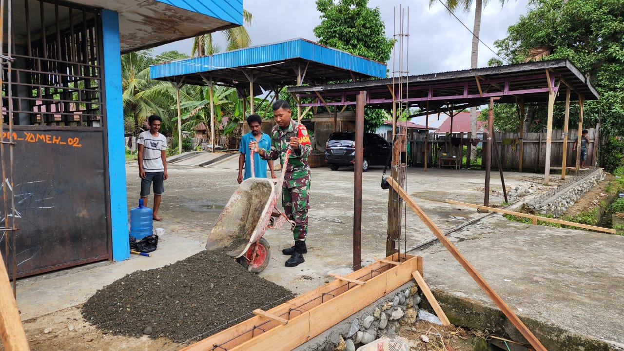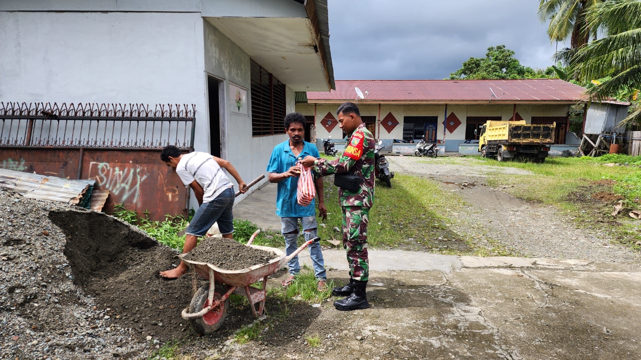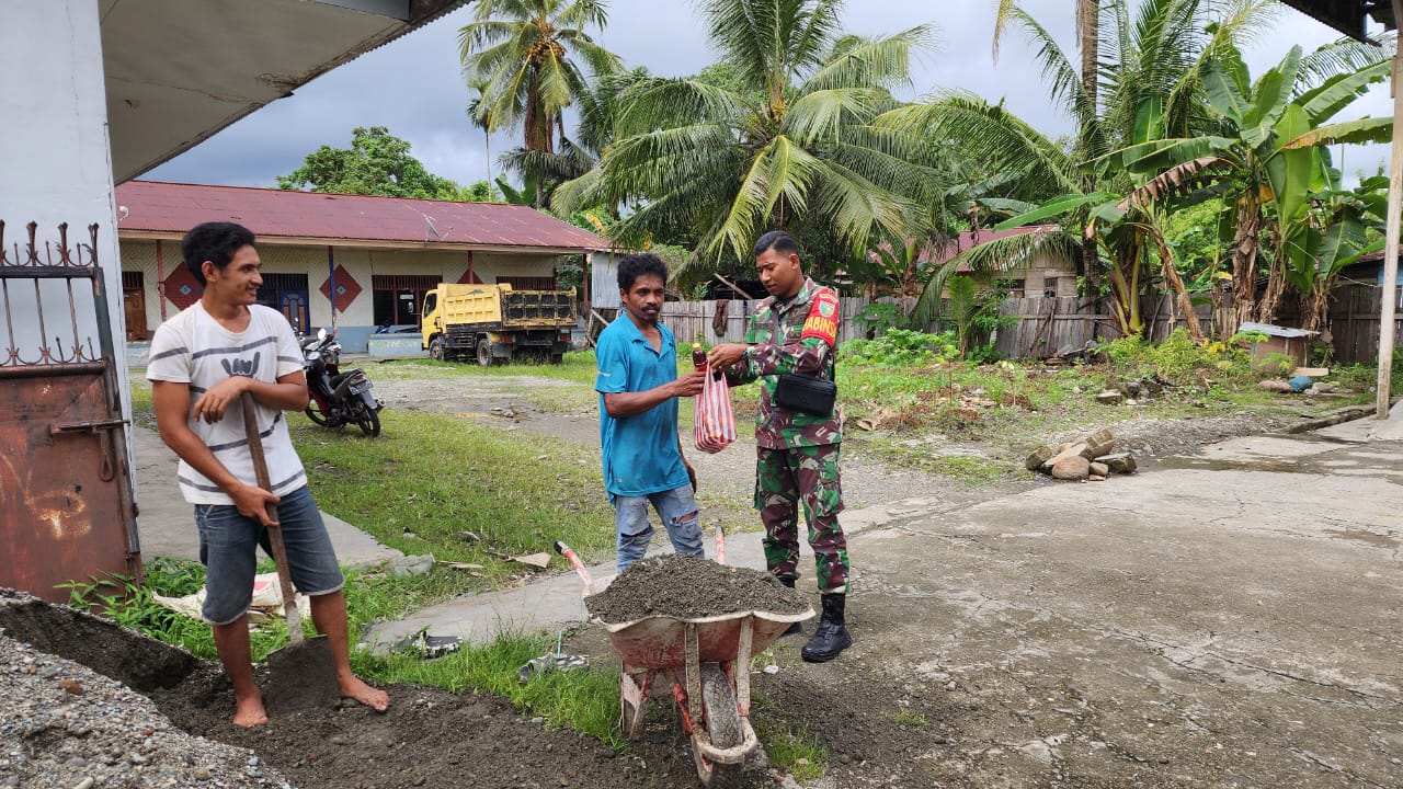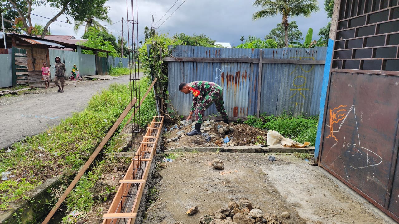 Gotong Royong, Babinsa Koramil 1705-01/Nabire Bantu Pembangunan Pagar Rumah Warga
