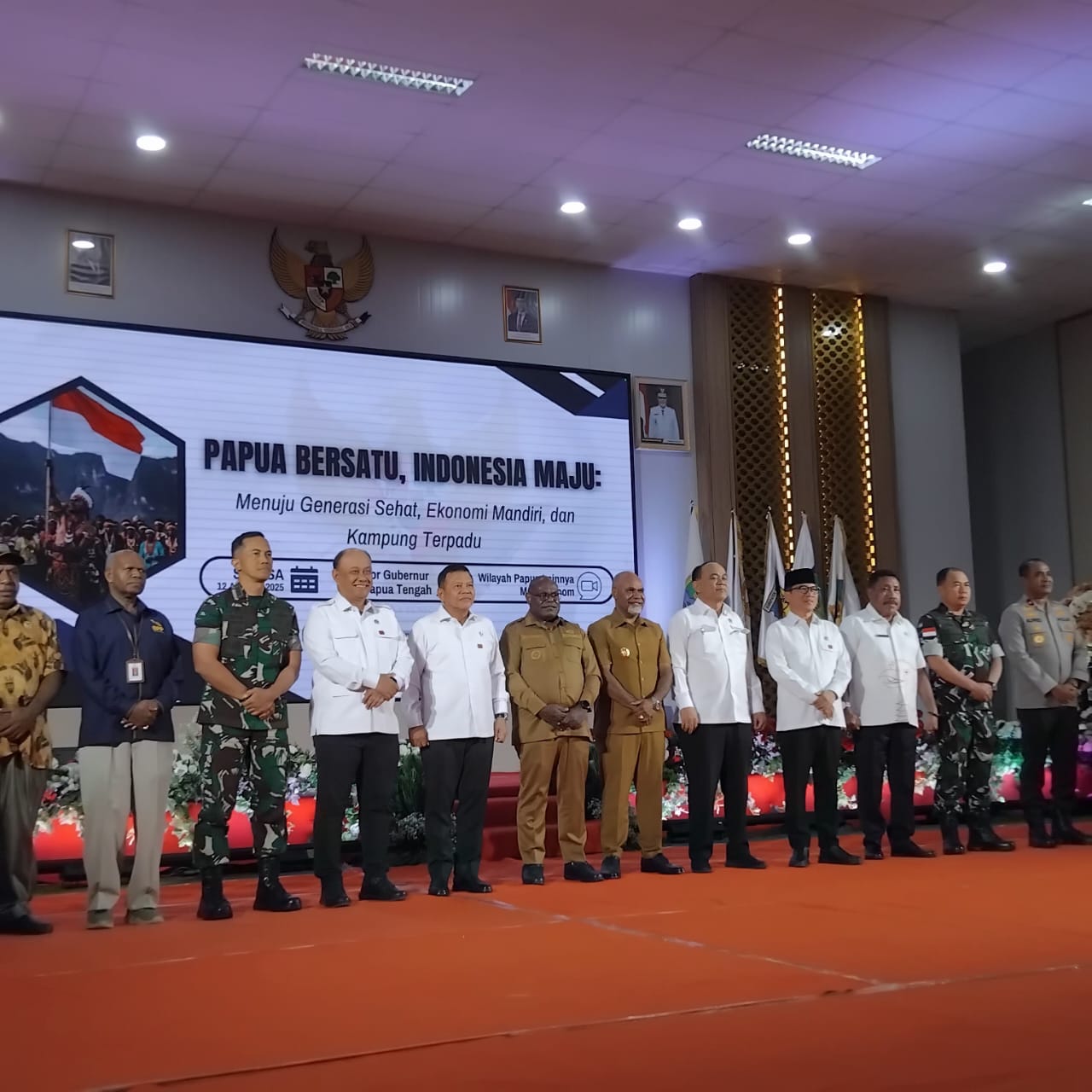 Nabire, 12 Agustus 2025 – Gubernur Papua Tengah, Meki Nawipa, memaparkan berbagai capaian pembangunan daerah dalam kegiatan Papua Bersatu, Indonesia Maju: Menuju Generasi Sehat, Ekonomi Mandiri dan Kampung Terpadu yang digelar di Ballroom pada Selasa (12/08/2025). Pemaparan tersebut disampaikan langsung di hadapan Menteri Koperasi, Menteri Desa dan Kepala Badan Gizi Nasional (BGN).