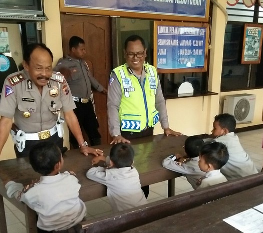 Satuan lalu lintas Polres Nabire, menerima kunjungan dari para siswa TK Kemala Bhayangkari Nabire, dalam rangka pengenalan akan rambu lalu lintas sejak usia dini, kamis kemarin 28 September 2017.