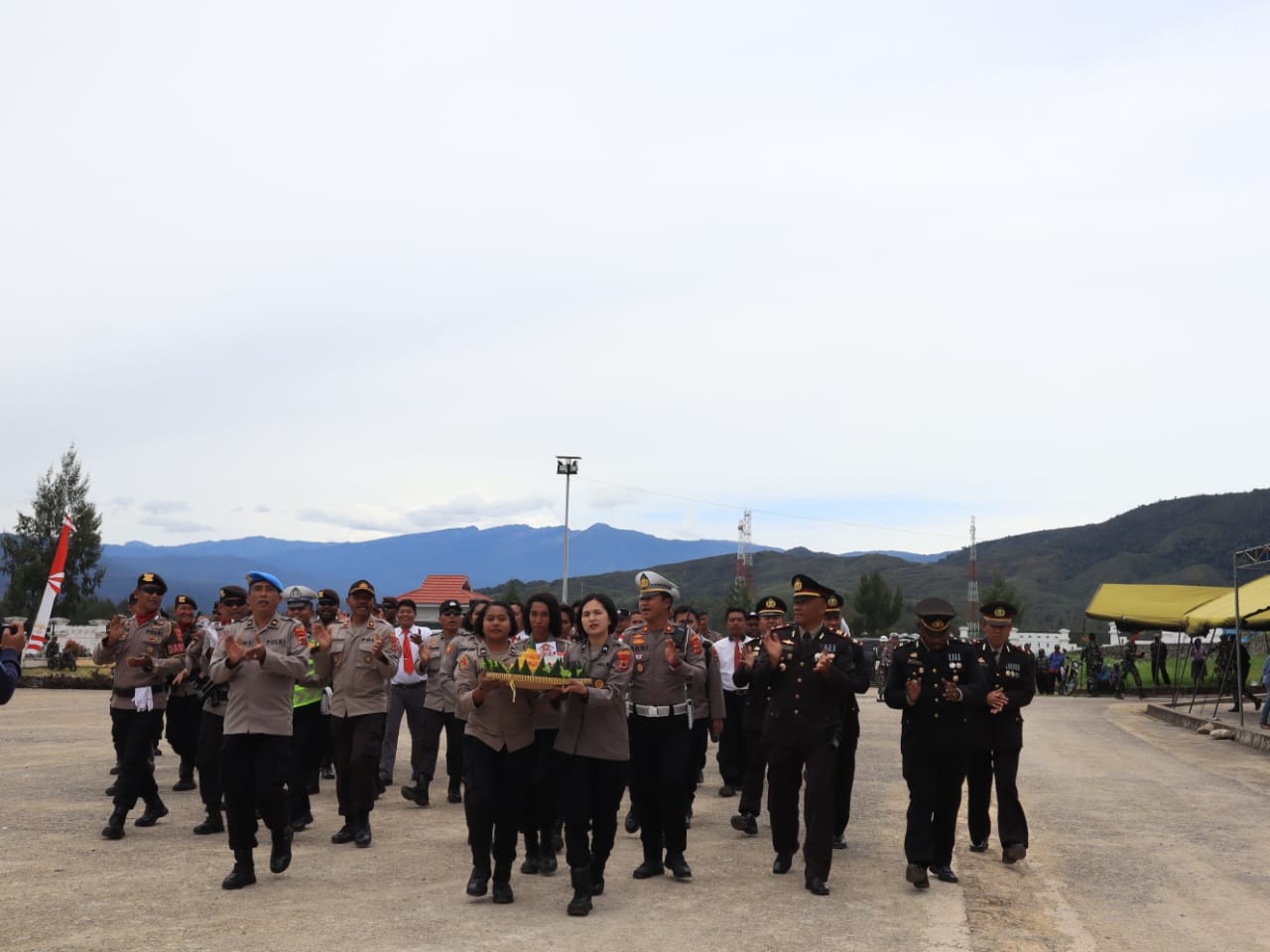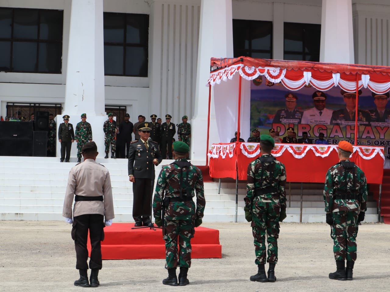 Paniai, Kapolres Paniai, AKBP Abdus Syukur Felani, S.I.K., menghadiri secara langsung upacara peringatan HUT TNI ke-78 Tahun 2023, dipusatkan di halaman Kantor Bupati Paniai, Kamis (05/10/2023).