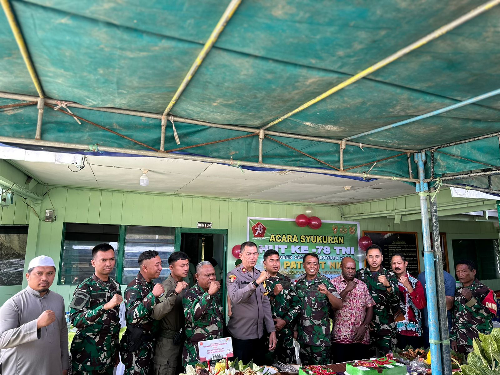 Hadiri Syukuran HUT TNI Ke 78, Kapolres Dogiyai Serahkan Tumpeng ke Pabung Perwira Penghubung Moanemani