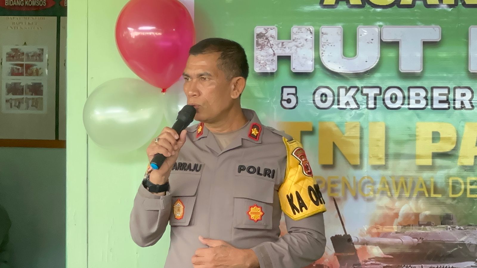 Kapolres Dogiyai Kompol Sarraju, SH, dalam sambutan singkatnya pada acara syukuran HUT TNI ke 78 ini menyampaikan, “Saya atas nama pimpinan Polri yang ada di Kabupaten Dogiyai mengucapkan Dirgahayu TNI ke-78, semoga TNI ke depan lebih jaya dan dicintai masyarakat.