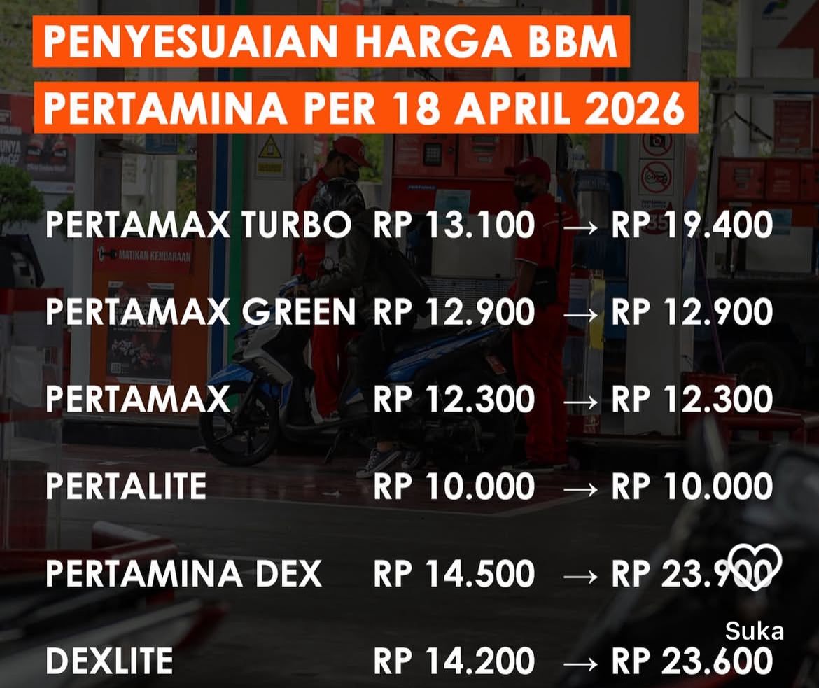Informasi tersebut disampaikan melalui pesan WhatsApp pada Sabtu (18/04/2026). Ia menegaskan bahwa masyarakat dapat memantau perubahan harga BBM melalui laman resmi maupun kanal media sosial resmi Pertamina Patra Niaga.