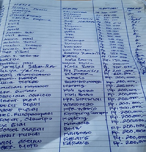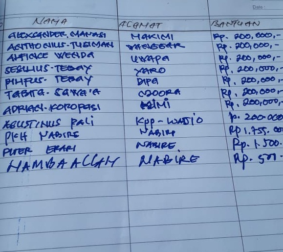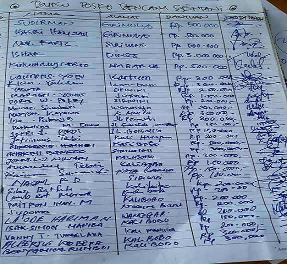 “Posko kami buka jam 9 pagi, dan sampai siang tadi sudah terkumpul dana dari masyarakat sebesar Rp. 21.050.000.- Diantara yang menyumbang ada Asisten III Setda Nabire, Pak Piter Erasi serta Kabag Umum Setda Nabire Ibu Aisyah”, tutur Kadinsos Nabire.