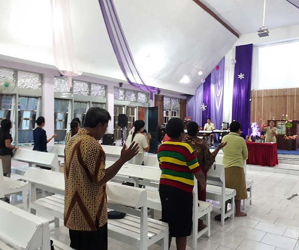 Ibadah tersebut dipimpin pelayan firman, Pdm. Surya Roreng dengan mengambil pembacaan Firman Tuhan dari kitab “Matius 19: 16-26 dengan nats “Orang Muda Yang Kaya”.