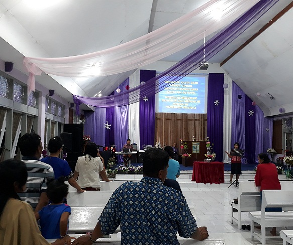 Ibadah diisi dengan pujian dari jemaat dan diakhiri dengan sakramen perjamuan kudus.
